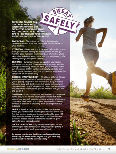 Sweat Safely – Health Check Magazine Jan/Feb 2019 Share this: Share on X (Opens in new window) X Share on Facebook (Opens in new window) Facebook Like Loading... Related Published by Emily Facoory View all posts by Emily Facoory