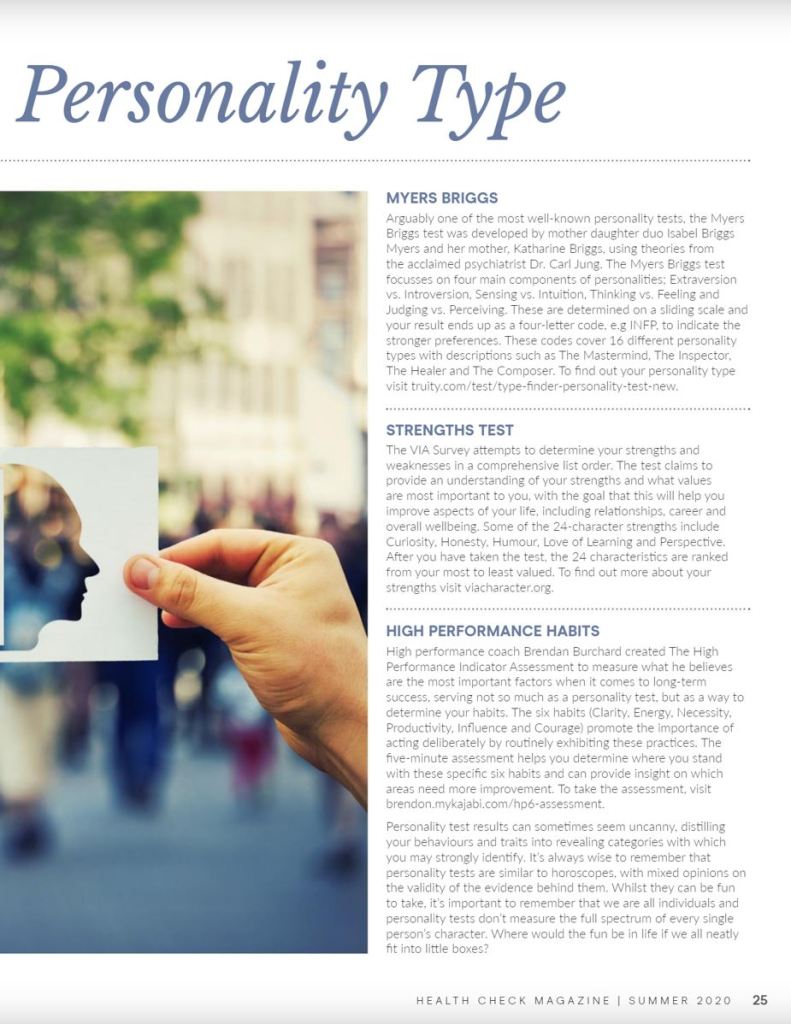 Discover Your Personality Type – Health Check Magazine Summer Issue 2020/21 Share this: Share on X (Opens in new window) X Share on Facebook (Opens in new window) Facebook Like Loading... Related Published by Emily Facoory View all posts by Emily Facoory